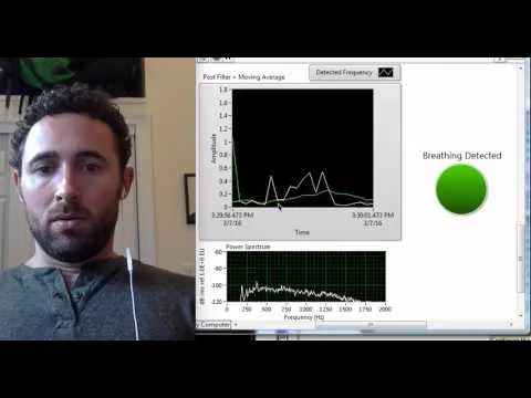I researched some of the methods for detecting breath outlined in a variety of research papers and coded an application to look for frequency spectrum peaks in the range appropriate for breath detection while filtering out other frequency ranges.